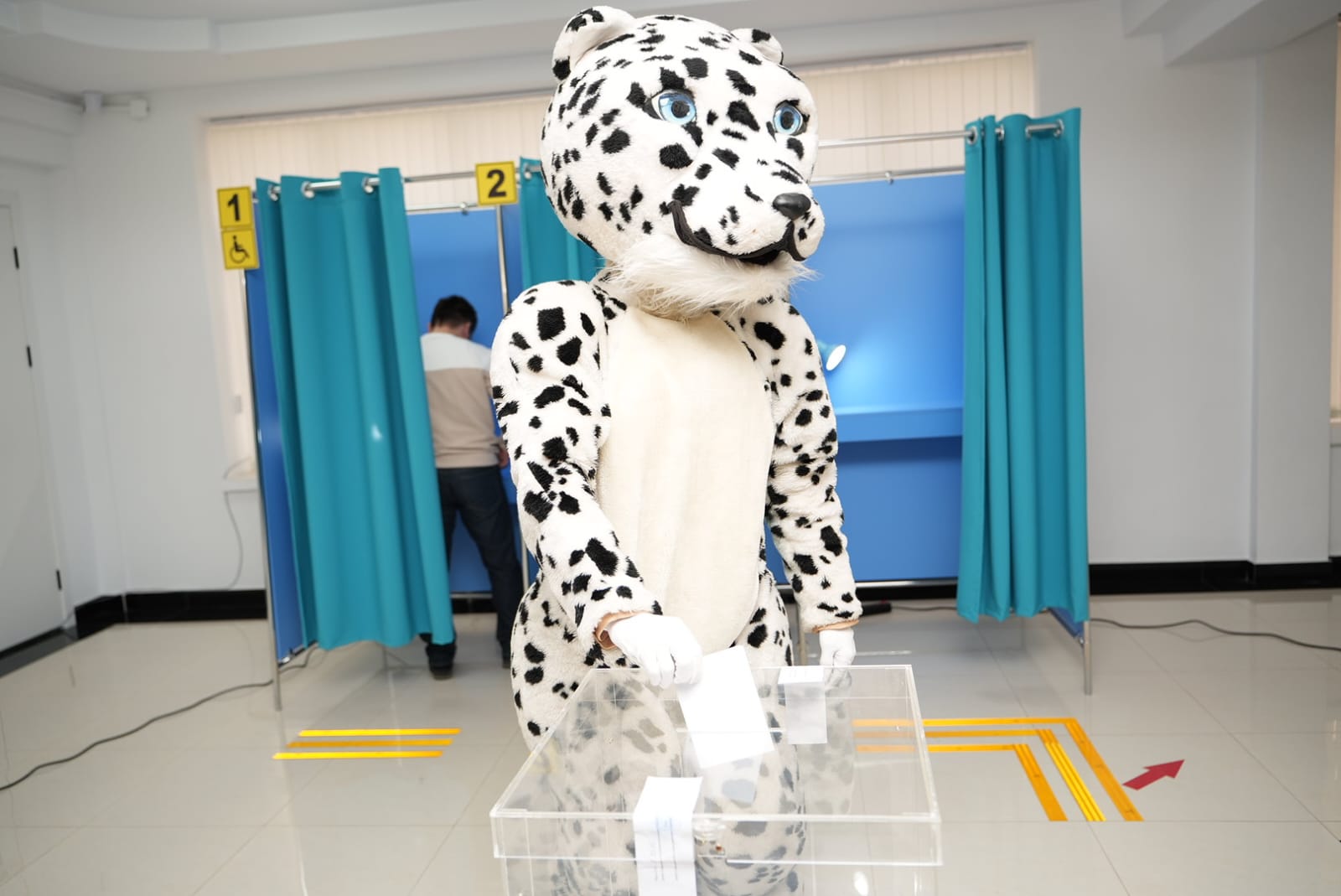 Республикалық референдум күні, жаңа Конституцияны қабылдау мәселесі бойынша, Қонаев қаласындағы бір сайлау учаскесінде тұрғындардың назарын ерекше дауыс беруші аударды. Аймақ тұрғыны қар барысының бейнесінде дауыс беруге келді. Бұл бейне түркі халықтарының мәдениетінде күш пен асылдықпен байланысты.