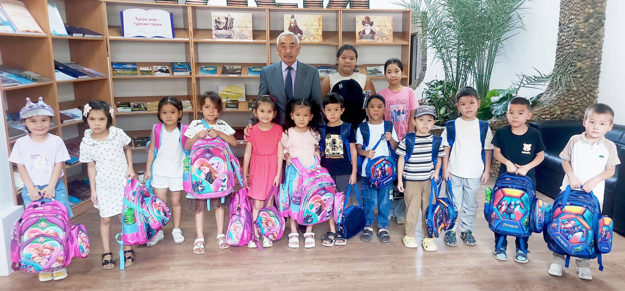 Мұнан кейін аудандық кәсіподақ ұйымының төрағасы әлеуметтік осал топтағы отбасылардан шыққан 21 балаға жаңа оқу жылына қажетті құрал-жабдықтармен толықтырылған сөмкелер табыстады. Жинақта – дәптер, қаламсап, оқушы күнделігі, бояу және еңбек сабақтарына арналған құралдар, ауыз су құйып алатын ыдыс және тағы да басқа заттар болды.