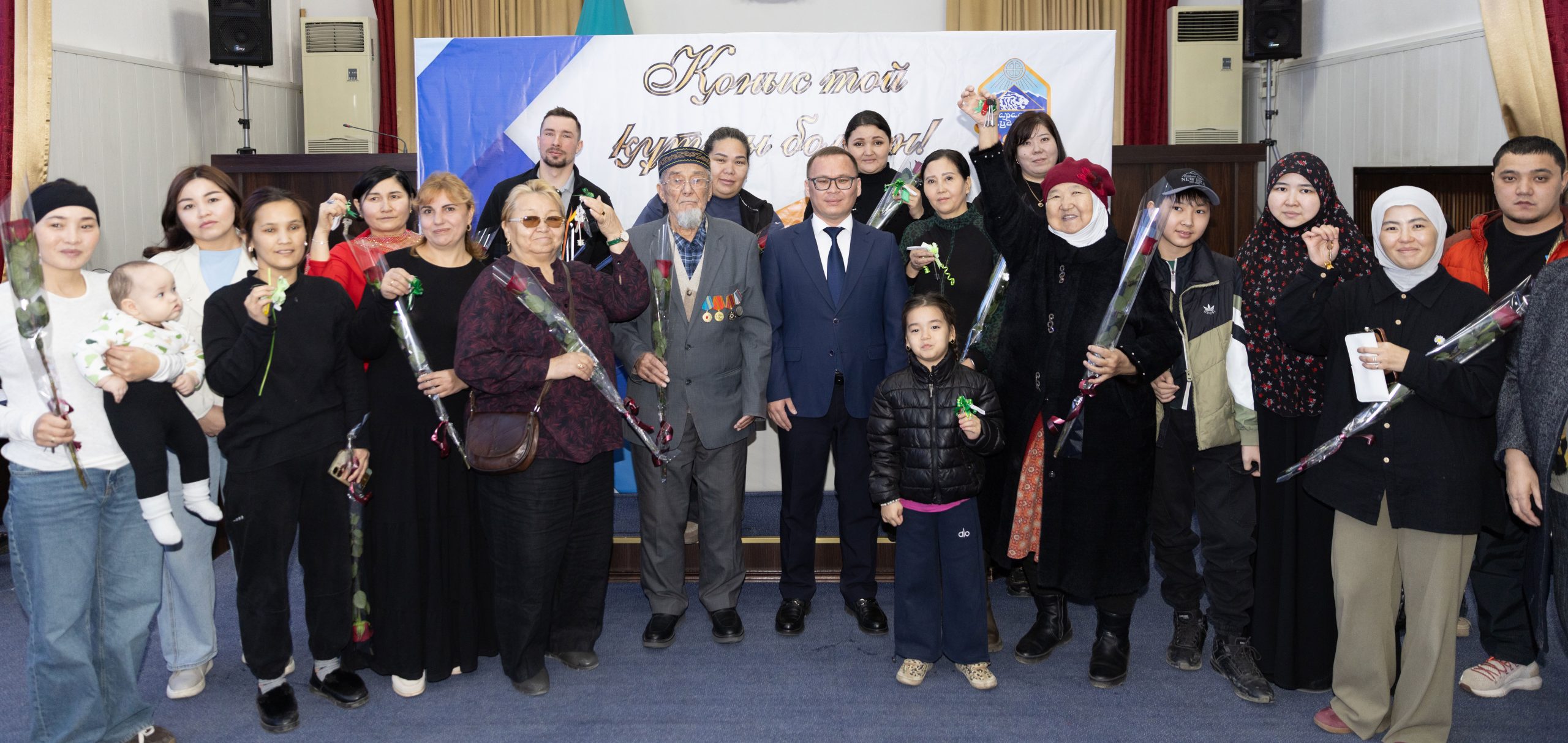 Қуаныш иелерін аудан әкімінің орынбасары Нұрлан Төлепберген арнайы құттықтап, мерекелік ақ тілегін арнады. Ол өз сөзінде Наурыз мейрамы әрдайым жақсылықтың бастауы екенін айтып, қоныс тойының айтулы күннің қарсаңына келіп тұрғанын айрықша атап өтті. Нұрлан Асқарұлы осындай жылы лебізін білдірген соң, 14 тұрғынға жаңа қоныстың кілттерін табыс етті.