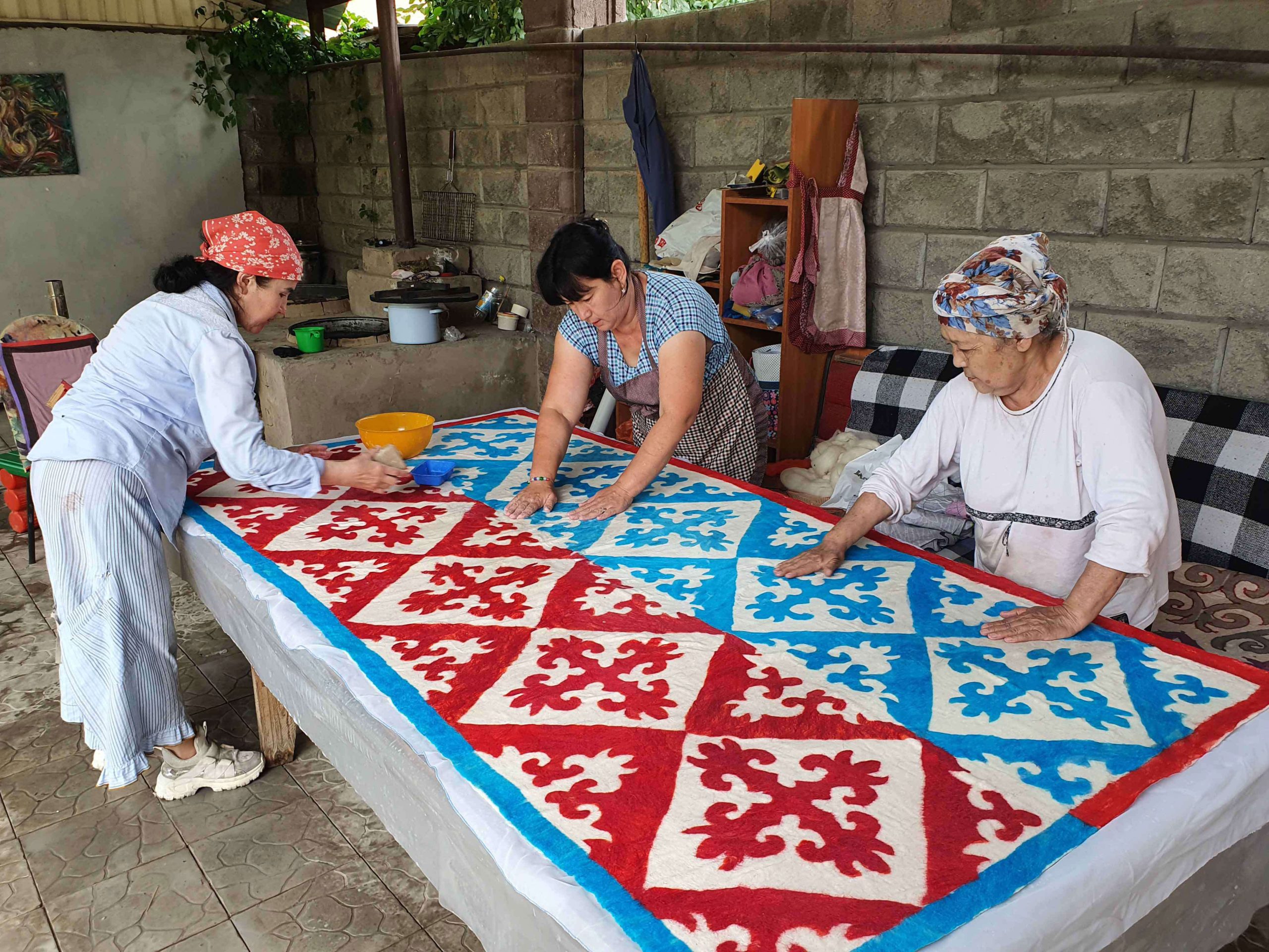 В ту пору она помогла многим сельчанкам, делилась с ними знаниями, вдохновляла, зажигала. Они вместе мыли, чистили и красили шерсть, шили одеяла (корпе), лоскутные одеяла (курак корпе), коврики (алаша), войлочные ковры с узорами (текимет). Занятия проводила у себя на дому. Постепенно её скромное жилище превратилось в самую настоящую мастерскую.