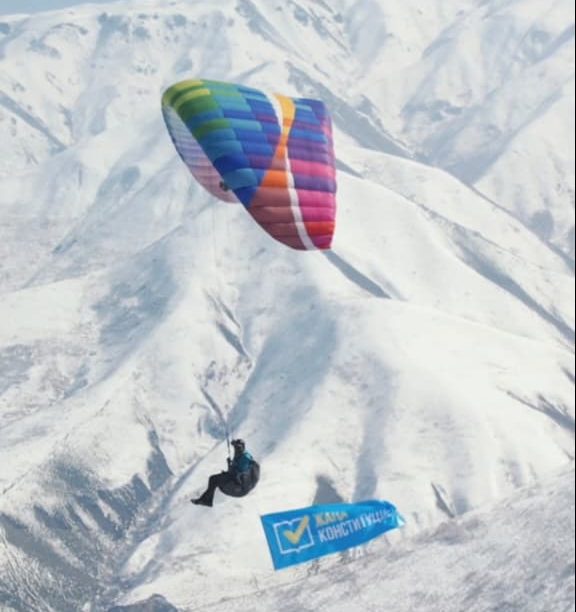 15 марта — Сегодня в ходе республиканского референдума прошла уникальная акция. Профессиональный парапланерист Искендер Толкынович Джунусов прибыл на избирательный участок прямо по воздуху, совершив эффектный полет перед тем, как сделать свой выбор.