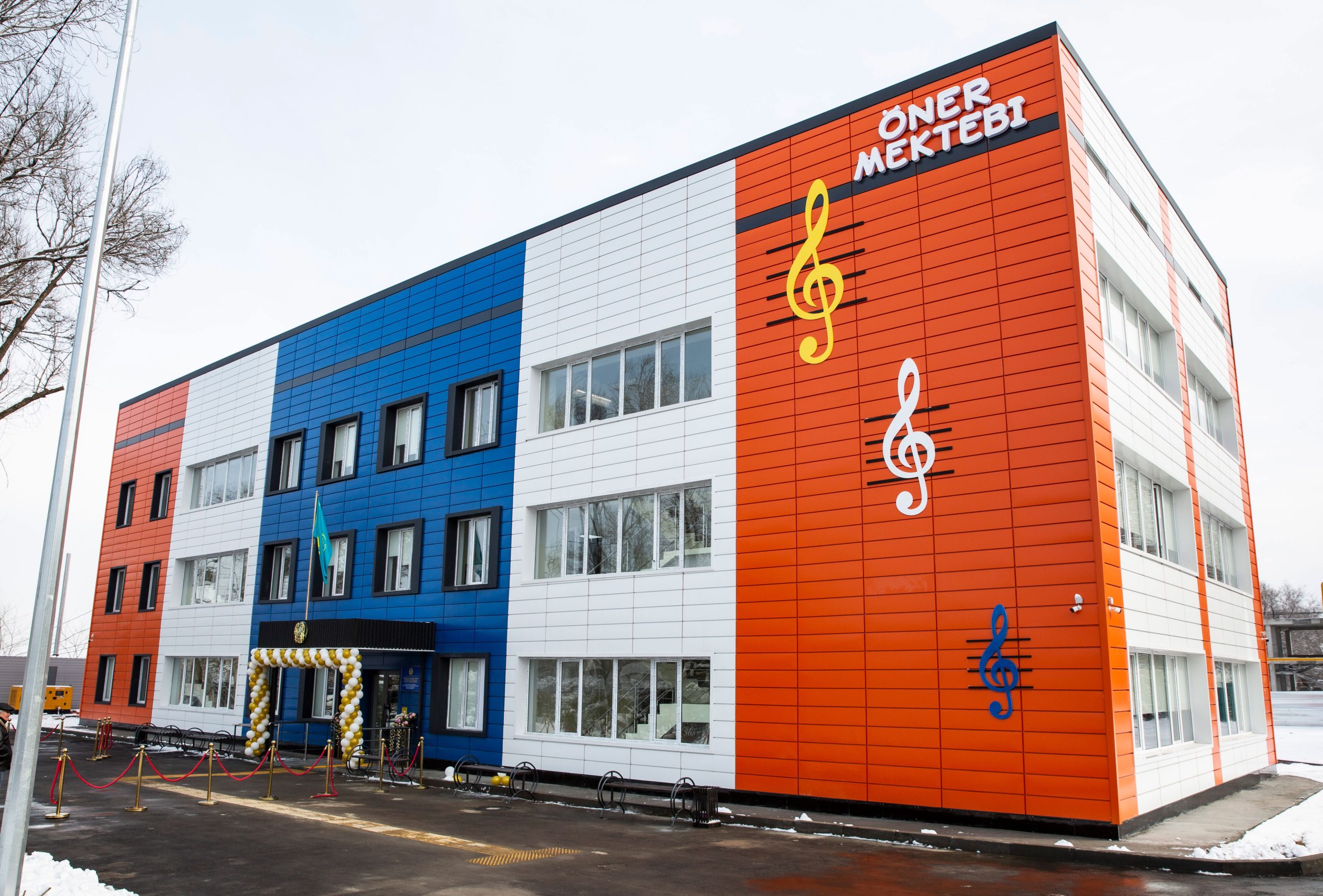 Үш қабатты жаңа өнер ошағының жалпы аумағы 0,1937 гектарды, ал ғимаратының көлемі 5218 шаршы метрді құрайды. Мекемеде штат бойынша 64 мұғалім жұмыс істейді. Олардың барлығы арнайы өткізілетін конкурс нәтижесі бойынша алынады. 300 орынға арналған өнер ордасы 530 оқушыны қабылдай алады. Ауданның жас таланттары мұнда домбыра, шертер, қыл қобыз, сырнай, гитара, ән терме, дәстүрлі ән, фортепиано, саксафон, цирк өнері сияқты 17 бағытта қабілеттерін шыңдайды.