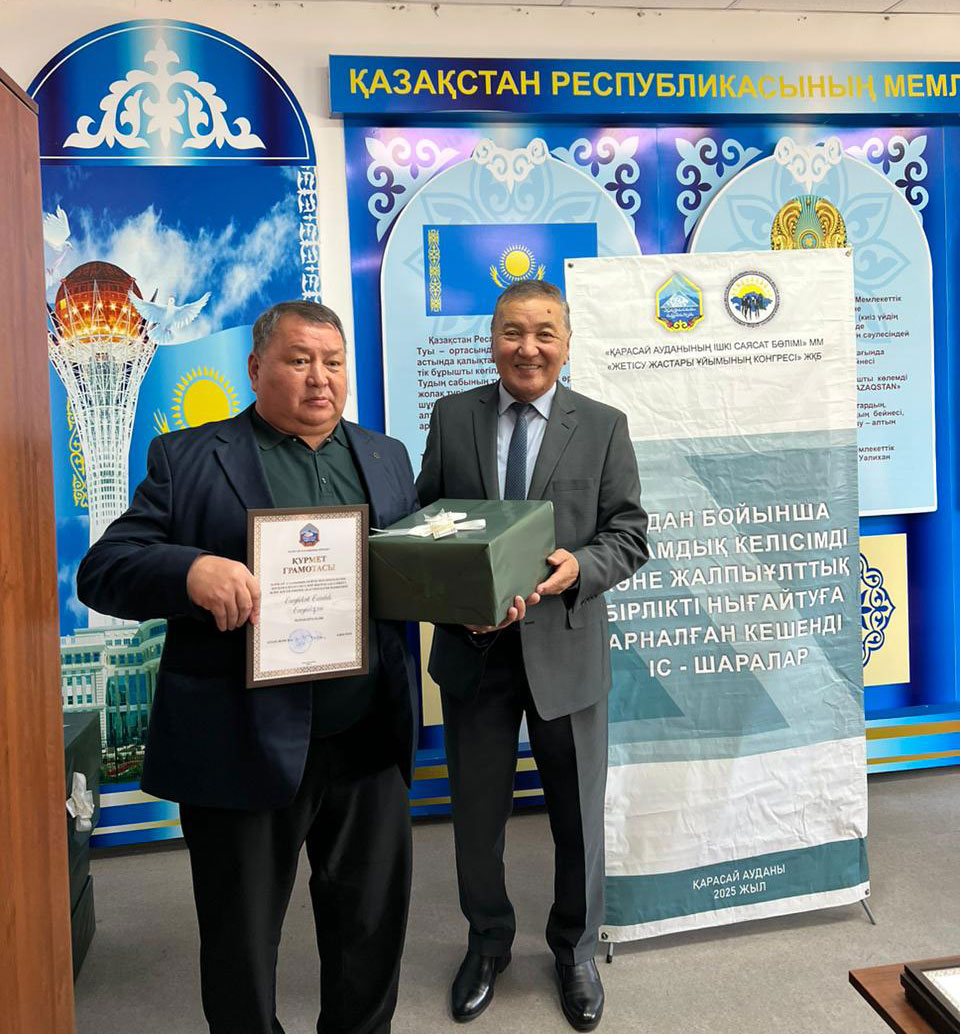 Ең бір ерекшелеп айтатын жайт, Ұлы Жеңістің 80 жылдық мерейтойы қарсаңында Ленинград блокадасына қытысқан көзі тірі Зинайда Суханованың үйіне ардагерлер ұйымы барып, Ленинград қаласы губернаторының арнайы жіберген құттықтау телеграммасын беріп, оған ұйым атынан азық-түлік жағынан айтарлықтай сый-сияпат жасады. Сондай-ақ азық-түлік жағынан 99 жасқа келген Ұлы Отан соғысы ардагерінің жесірі Құндызай Көлбаеваға, 100 жасқа келген тыл ардагері Сәлима Бұлғақбаеваға және 28 тыл еңбеккерлеріне көп-көрім көмектер көрсетілді.